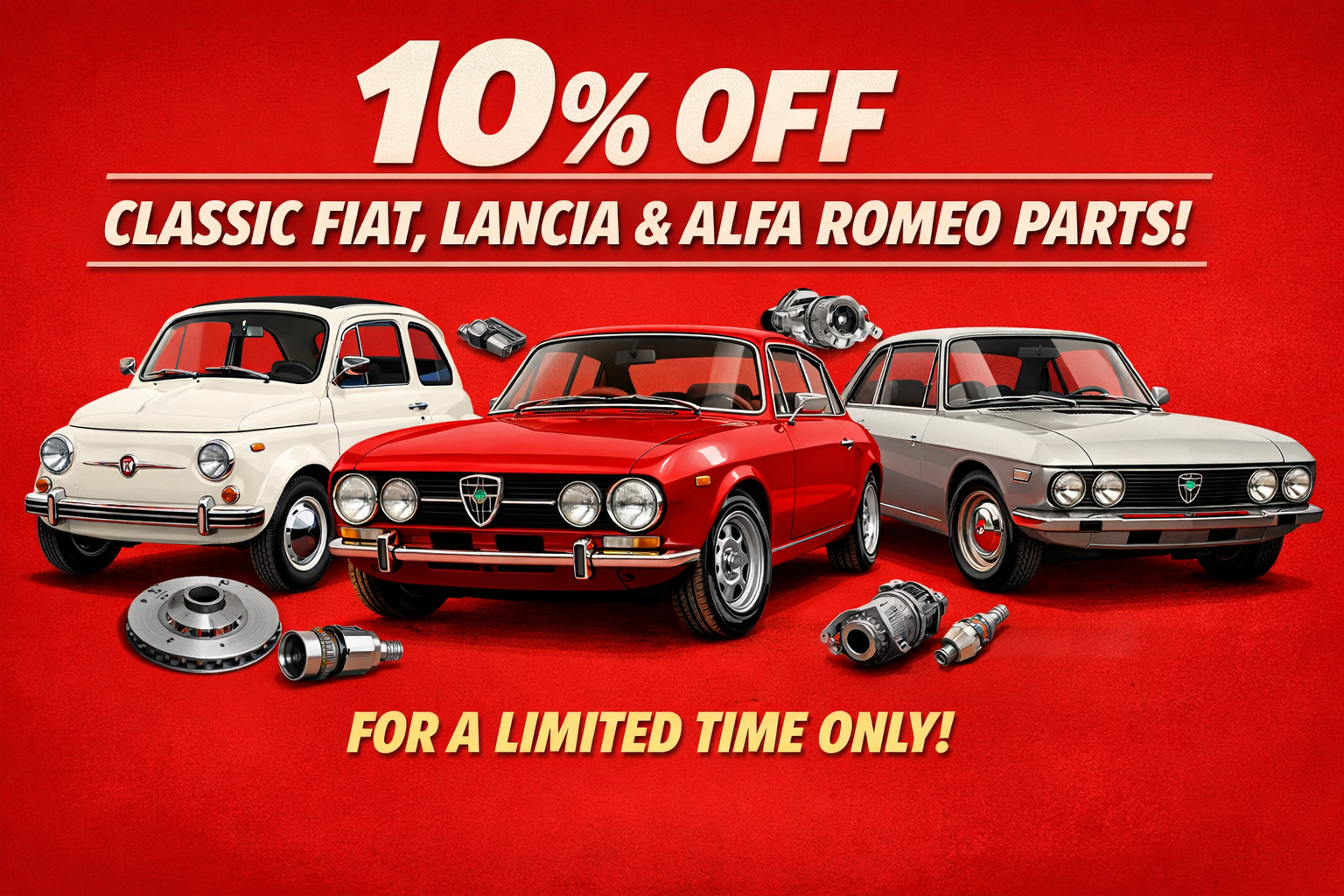 Shop Brand New Parts To Upgrade Your Classic Fiat 500, 126, 600, 850 & more! Brake disc kits, independent suspension, uniball joints, uprated engines, abarth speedo, sport exhaust, bucket seats & more! UK Based, global shipping available. We also offer bare metal restorations, get in touch with us for more details.